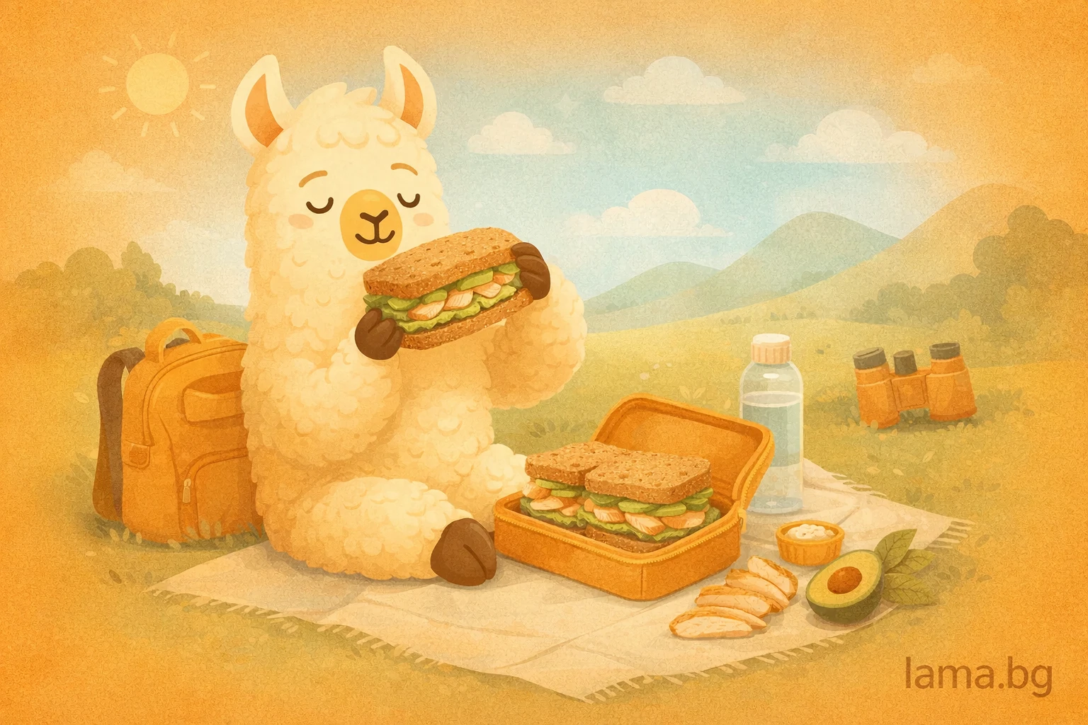 Това сандвич-меню е направено за носене в чанта и става за дълъг ден навън при инсулинова резистентност. Комбинира пълнозърнеста основа, протеин, зеленчуци и мазнина, за да държи по-стабилна енергия.